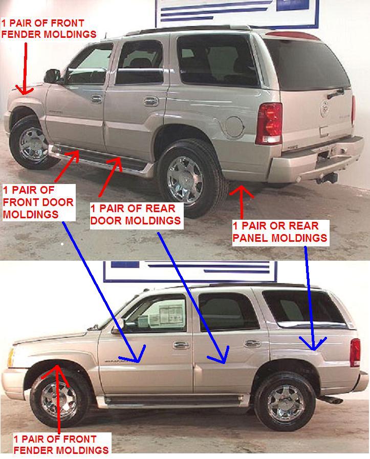 ESCALADE ESCALADE 02-04 CONVERSION 8PCS KIT INCLUDE: 1 PAIR OF FRONT FENDERS MOLDINGS,1 PAIR OF REAR FENDERS MOLDINGS,1 PAIR OF FRONT DOOR MOLDINGS,1 PAIR OF REAR DOOR MOLDINGS